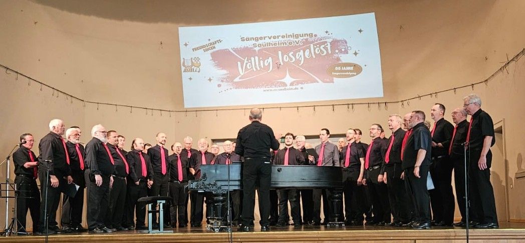 Das Konzertmotto lautete VÖLLIG LOSGELÖST und demonstrierte von Anfang die Vielfalt und Leichtigkeit des Gesangs in der gut besuchten Saulheimer Sängerhalle.