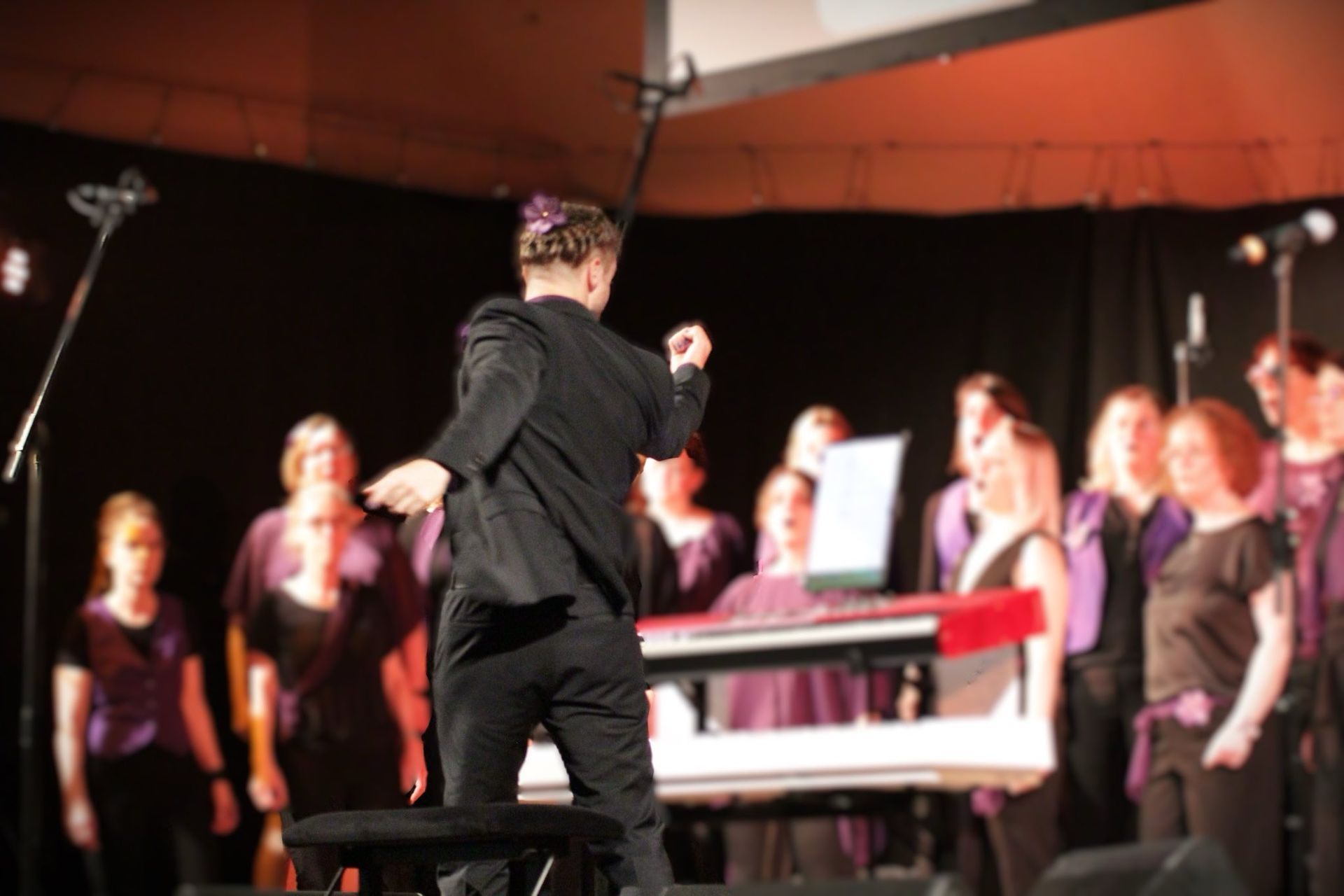 Es folgte der zweite Block des Konzertes mit Stücken zum wohl kraftvollsten aller Gefühle – der Liebe: Den Anfang machte der schwedische A-Capella-Song „Jag sag Dig“, auf Deutsch „Ich sehe Dich“ von Kraja. Zurück in die 80er-Jahre ging es mit „Running up that hill“ von Kate Bush. Dass es in Liebesliedern nicht nur um die rosarote Brille geht, bewiesen die Frauen mit „You oughta know“ von Alanis Morissette. Stärker sind die Gefühle über ein Beziehungsende wohl nie in Szene gesetzt worden als in diesem Lied, und auch der Chor interpretierte dieses Stück, unterstützt durch die Band, sehr ausdrucksstark. Auch hier wurden die Lieder durch ergänzende Moderationen eingerahmt und näher erläutert.